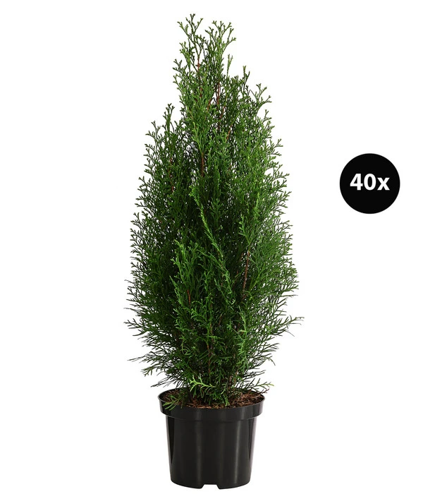 Der wunderschön dichte Wuchs in Zusammenspiel mit dem zu jeder Jahreszeit frischgrünen Nadelkleid – die Thuja ‘Smaragd‘ ist eine der schönsten immergrünen Pflanzen, mit denen Sie Ihre Gartenanlage bereichern können. Und wenn Sie den Plan haben, mit den Pflanzen eine Hecke zu setzen, können wir Sie zu dem Vorhaben nur beglückwünschen. Da das Nadelgehölz beim Höhenwachstum nicht im Schneckentempo vorgeht und bis zu 30 cm pro Jahr zulegen kann, dabei aber angenehm schlank bleibt, wird sich die grüne Wand vorwiegend in die Höhe erheben und weniger in die Breite. Wie hoch die Pflanzen maximal wachsen, wenn Sie nicht zur Schere greifen? Thujen können stattliche 400-600 cm hoch werden. Das ist Ihnen zu hoch? Kein Problem, dann stoppen Sie das Wachstum auf genau der Höhe, die ideal für die Proportionen Ihrer Gartenanlage sind. Laden Sie gleich die Thuja ‘Smaragd‘ in Ihren Garten ein und freuen sich jeden Tag an den frischgrünen Schmuckstücken!