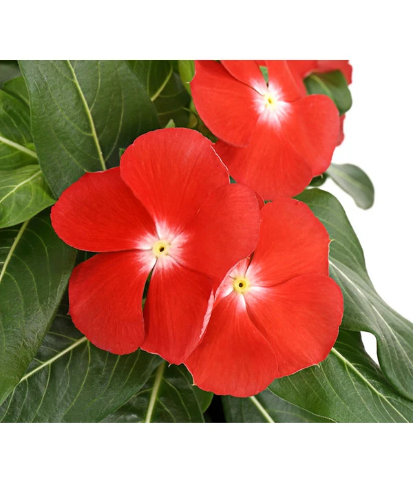 Sie meinen, eine so lange Blütezeit kann nicht sein? Oh doch. Mit der Catharanthe können wir Ihnen eine exotische Schönheit im Beet- und Balkonsortiment mit einem besonders reichen und ausdauernden Blütenflor präsentieren. Die Pflanze ist in den Tropen und Subtropen weit verbreitet, kommt aber ursprünglich aus Madagaskar, weshalb sie auch als Madagaskar-Immergrün bekannt ist. Dort wächst sie als immergrüner Halbstrauch, der bis zu einem Meter Höhe erreichen kann. In unserem Klima wird die Catharanthe nur etwa 30 – 40 cm hoch, eine ideale Größe, um sie als attraktive Balkonkasten- und Kübelpflanze zu kultivieren. Aber die exotische Schönheit trumpft nicht nur mit einem sensationellen Blütenschmuck auf, der weiß, rosa, rot und pinkfarben über dem kräftig grünen Blattwerk leuchtet, sie begeistert auch mit einer schier unglaublichen Robustheit.