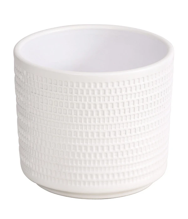 Sie würden gerne frischen Wind in Ihre Raumdekoration bringen? Dann verleihen Sie Ihren schönen Pflanzen doch einen völlig neuen Auftritt. Mit diesem Übertopf Sino gelingt Ihnen das ganz sicher. Bei diesen hochwertigen und vielseitigen Übertöpfen trifft gutes Aussehen auf Qualität. Dieser Übertopf aus Keramik hat rundum ein gestanztes Kachelmuster. Der Blumentopf hat eine schlichte gerade Form und ist in unterschiedlichen Größen erhältlich.