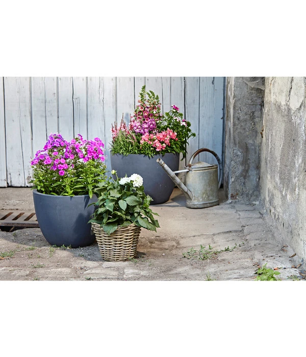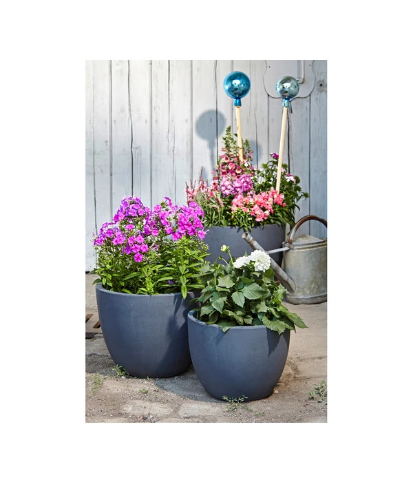 Ob auf der Terrasse, dem Balkon oder auf dem Hauseingangspodest – nicht nur die Pflanzen haben eine dekorative Wirkung, sondern auch die Gefäße, in den sie wachsen. Mit dem Leichtbeton-Pflanztopf Manchester von Dehner steht Ihnen ein Gefäß zur Verfügung, dass durch die schlichte Form und das kontrastierende Schwarz vor allem farbintensive Pflanzen so richtig zur Geltung bringt. Und weil Sie den Leichtbeton-Pflanztopf Manchester bei Dehner in verschiedenen Größen finden, können Sie auch aparte Arrangements mit mehreren Töpfen in verschiedenen Höhen kreieren.