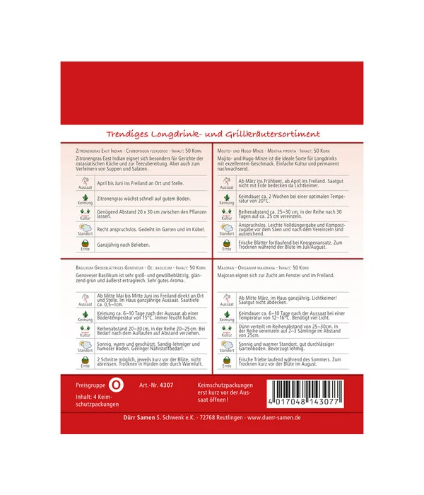Dürr Samen Longdrink- und Grillkräutersortiment