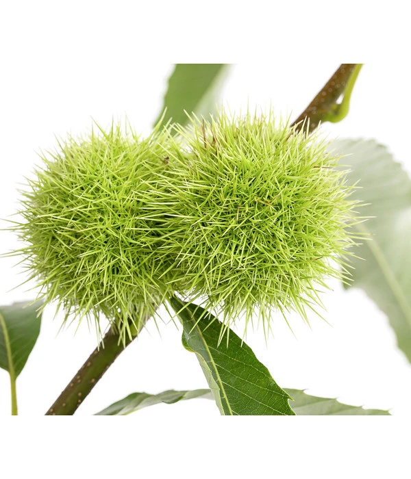 Bekannt ist die Esskastanie von Weihnachtsmarktständen. Jetzt können Sie sich diesen Snack nach Hause holen. Die Esskastanie ist eine Besonderheit unter den Obstbäumen. Sie benötigt sehr viel Platz, da sie bis zu 30 Metern hoch werden kann. Da sie kein Selbstbefruchter ist, benötigt sie eine Befruchterpflanze, um Früchte tragen zu können. Die Früchte sind auch als Maronen bekannt und sehen aus wie Kastanien. Ihre Schale ist weich, aber stachelig. Es handelt sich um laubabwerfende Bäume, die sehr alt werden können. Der älteste Laubbaum Europas ist eine Esskastanie, welche am Ätna auf Sizilien steht. Ihr Alter wird auf über 2000 Jahre geschätzt.