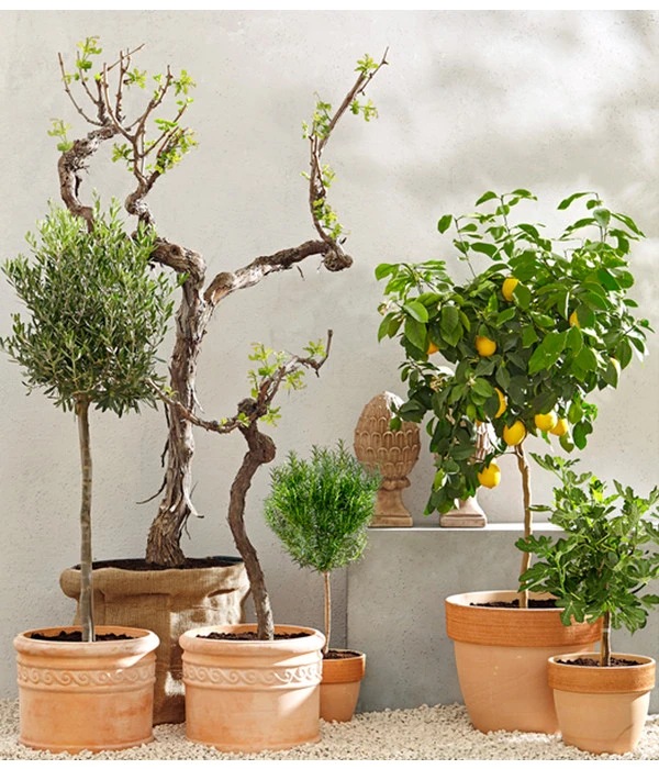 Die Echte Feige stammt ursprünglich aus Asien und ist mittlerweile weltweit bekannt. Heutzutage verbindet man sie hauptsächlich mit dem Mittelmeerraum, wie zum Beispiel Griechenland. Dekorativ sind vor allem die Blätter der Pflanze. Sie sind ledrig, groß und erinnern an eine gespreizte Hand. Auch die hellgraue Rinde ist ein wahrer Blickfang. Doch die Feige kann mehr als optisch überzeugen, denn sie bringt auch leckere Früchte hervor. Feigen sind bis zu 8 cm groß, sehr süß und violett. Die dünne Schale ummantelt ein rosarotes Fruchtfleisch mit kleinen Samenkernen. Die Schale kann bei Feigen mitgegessen werden. Ob die Früchte reif sind, erkennt man wenn die Schale bei Druck etwas nachgibt. Die Früchte können frisch verzehrt oder zu Kompott verarbeitet werden. Sie eignen sich auch als Trockenfrüchte aus dem Backofen. Auch gegrillt oder gebraten sind Feigen köstlich.