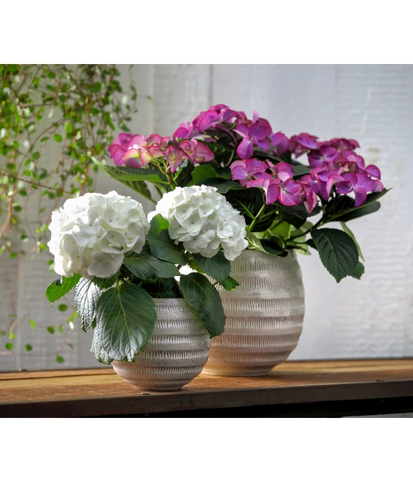 Wussten Sie eigentlich, dass blaue Hortensien wie die Dehner Premium Hortensie ‚Tiffany‘ in Wahrheit immer rot oder rosa sind? Erst wenn man der Pflanze bei niedrigem pH-Wert Aluminium gibt, färben sich ihre Blüten blau. Eine von Natur aus weiße Hortensie dagegen kann niemals blau werden. Dafür fehlt der benötigte rote Farbstoff. Deshalb ist es wichtig, die blauen und violetten Hortensien regelmäßig mit dem richtigen Dünger zu versorgen, damit man auch lange etwas von den prachtvollen Blütenbällen hat. Die Premium Teller-Hortensie ‚Tiffany‘ eignet sich hervorragend als Geschenk zu Geburtstagen oder Jubiläen und ist das Highlight in jeder Wohn- und Gartendekoration. Hortensien-Blüten eignen sich auch hervorragend zum Trocknen. Ein ganz besonderer Blickfang sind sie in der Vase oder in einem frischen Sommerstrauß.
