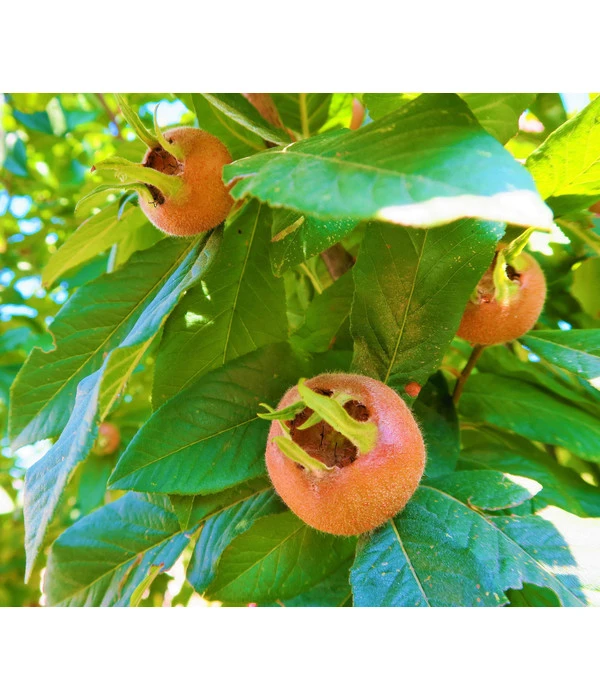 Die Mispel ist heutzutage ein eher seltener Gast in den Gärten. Früher konnte man sie in so gut wie jedem Bauerngarten finden. Doch seit der Fokus wieder auf Wildobst gelegt wird, gewinnt die Mispel an neuem Glanz. Die echte Mispel kann bis zu sechs Meter hoch werden und entwickelt eine sehr ausladende Krone. Die kleinen Blüten sieht man Ende Mai bis Anfang Juni. Die Früchte der Mispel sind gelb bis orangebraun und haben eine aufklaffende Spitze. Das Besondere ist, dass die Früchte erst durch Frosteinwirkung genießbar werden. Der Geschmack ist dann leicht säuerlich und süß.