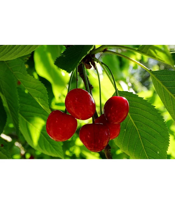 Beim Frischverzehr von Sauerkirschen scheiden sich die Geister: die einen verziehen beim Probieren der sauren Kirschen erschrocken das Gesicht, andere werden zu einem glücklichen Strahlen veranlasst, wenn sie die reifen, saftigen, tief dunkelroten Früchte mit dem säuerlichen Aroma genießen. Einig sind sich beide Kirschenlager aber darin, dass es kaum eine bessere Sauerkirsche für die Verarbeitung zu feinen Konfitüren und Marmeladen, zur Saftgewinnung und Mostherstellung gibt als die ‘Schattenmorelle‘. Sauerkirschen zählen zu den Steinobstsorten und sind generell etwas starkwüchsiger als Kernobstarten. Bei Dehner finden Sie die Sauerkirsche ‘Schattenmorelle‘ als Busch oder Halbstamm, so dass Sie genau die Größe und Form wählen können, die am besten in Ihren Garten passt. Geerntet werden können die Kirschen in der Regel Ende Juli / Anfang August.