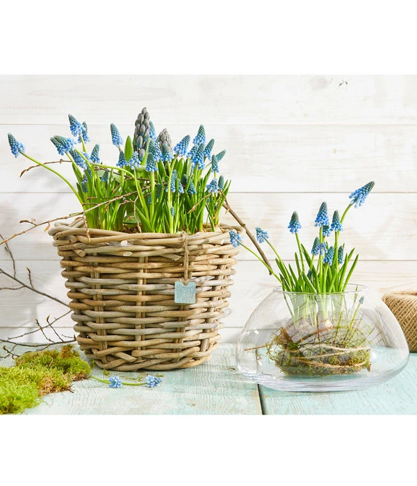 Die Traubenhyazinthen lieben einen sonnigen, warmen Standort. Sie gewöhnen sich auch an einen halbschattigen Platz, bekommen sie jedoch zu wenig Licht, fällt die Blüte relativ spärlich aus. An den Gartenboden stellen sie keine besonderen Ansprüche, lediglich zu nass darf er nicht sein. Deshalb sollten Sie die Pflanzen auch nur mäßig gießen. Ist die Traubenhyazinthe in der Schale gepflanzt, sollte das Substrat nie völlig austrocknen. Die Blütenbildung der Hyazinthe können Sie mit unserem Dehner Blumen-Dünger fördern. Geben Sie diesen doch nur vor der Blüte mit zum Gießwasser, während der Blüte ist kein Dünger mehr notwendig. Die Blüten können entfernt werden nachdem sie verwelkt sind. Die Blätter sollten noch einige Zeit stehen bleiben, bis sie vollkommen vertrocknet sind, damit die Knolle Zeit hat die in den Blättern enthaltenen Nährstoffe zu speichern. Hierdurch kann für das nächste Jahr wieder eine blühfähige Zwiebel entstehen.