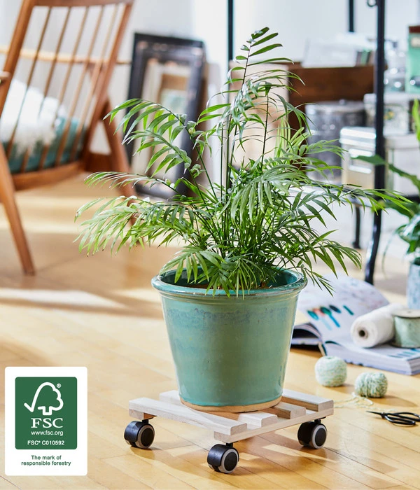 Der Roller von Wagner besteht aus hochwertigem Buchenholz mit feiner Maserung, sodass er stilvoll aussieht und sich als sehr stabil und belastbar erweist. Somit können Sie auch solche Töpfe und Behälter transportieren, die bereits schwer beladen sind. Dank der wendigen Rollen aus Kunststoff lässt sich der Roller bequem manövrieren, damit die Beförderung optimal und ohne große Mühen gelingt. Entscheiden Sie sich jetzt für den Multi Pflanzenroller aus dem Hause Wagner und erwerben Sie ein praktisches Zubehör für Ihre Pflanzen, das nicht zuletzt auch für sich gesehen mit einem edlen Design überzeugt.