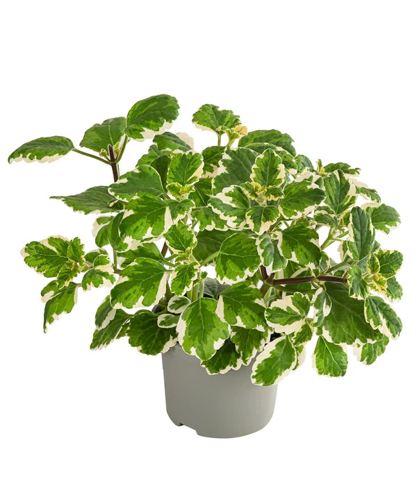 Kennen Sie den Mottenkönig? Wenn nicht, dann haben Sie hier die Chance auf eine vielversprechende Bekanntschaft. Denn diese dekorative Blattschmuckpflanze verfügt über magische Kräfte: Mit ihrem intensiven Duft vertreibt sie Motten und Mücken sehr wirkungsvoll. Der aromatische Duft erinnert Sie vielleicht an echten Weihrauch, doch mit dem ist diese Weihrauch Pflanze nicht verwandt. Die buschige Pflanze wächst zunächst aufrecht, bildet dann aber lange Triebe, die bogig überhängen und bis zu 1 m lang werden können. Deshalb eignet sich die Hängepflanze perfekt für die Bepflanzung von Blumenkästen, Töpfen und Ampeln. Dort ist sie stets ein reizvoller Hingucker und zugleich können Sie vor flatternden Motten und Mücken geschützt herrliche Sommerabende auf der Terrasse oder dem Balkon verbringen.