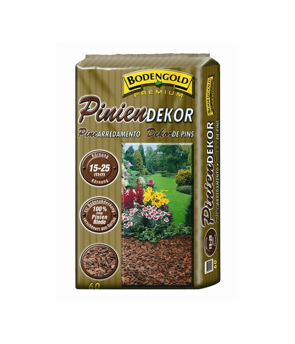 In der Natur gäbe es kein Fleckchen kahlen Boden. Aber eine natürliche Mulchschicht aus Blättern, Zweigen und irgendwelchen Pflanzen kann in puncto Dekorationswert natürlich nicht mit dem Ziegler Bodengold Piniendekor mithalten. Und weil es sich bei diesem Material um die naturreine, gesiebte Rinde von Pinien handelt, die im Mittelmeerraum heimisch sind, können Sie mit Ziegler Bodengold Piniendekor gleich drei Vorteile genießen: Erstens bringt dieses Naturmaterial mit seinem orangeroten Farbton und dem typischen Pinienduft eine mediterrane Note in Ihren Outdoor-Bereich, zweitens verfügt es über eine mindestens ebenso gute, wenn nicht bessere Schutzwirkung als heimischer Rindenmulch. Und drittens bieten wir Ihnen jetzt Ziegler Bodengold Piniendekor in der praktischen Großpackung an, mit der Sie viele Flächen bedecken können. Bestellen Sie also gleich diesen hochwertigen Pinienmulch, den wir Ihnen dann ganz bequem auf einer Palette direkt nach Hause liefern.